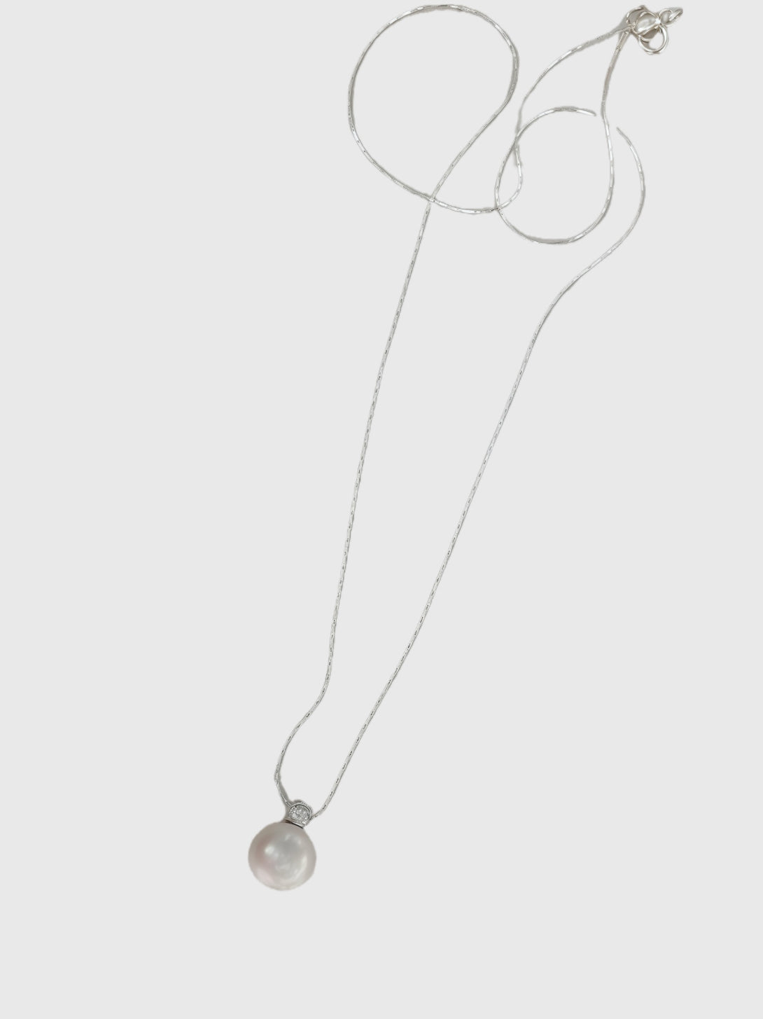 Like a moonflower blooming in the stillness of night, Lunaria captures the essence of quiet magic and timeless allure. A bold, ethereal pearl anchors the piece, radiant and full of mystery, suspended delicately from a fine silver chain that glimmers like stardust. With every movement, it whispers of ancient goddesses, lunar tides, and silvery dreams. Effortlessly refined, Lunaria is a talisman of serenity and strength, perfect for the modern muse with a mythic soul.