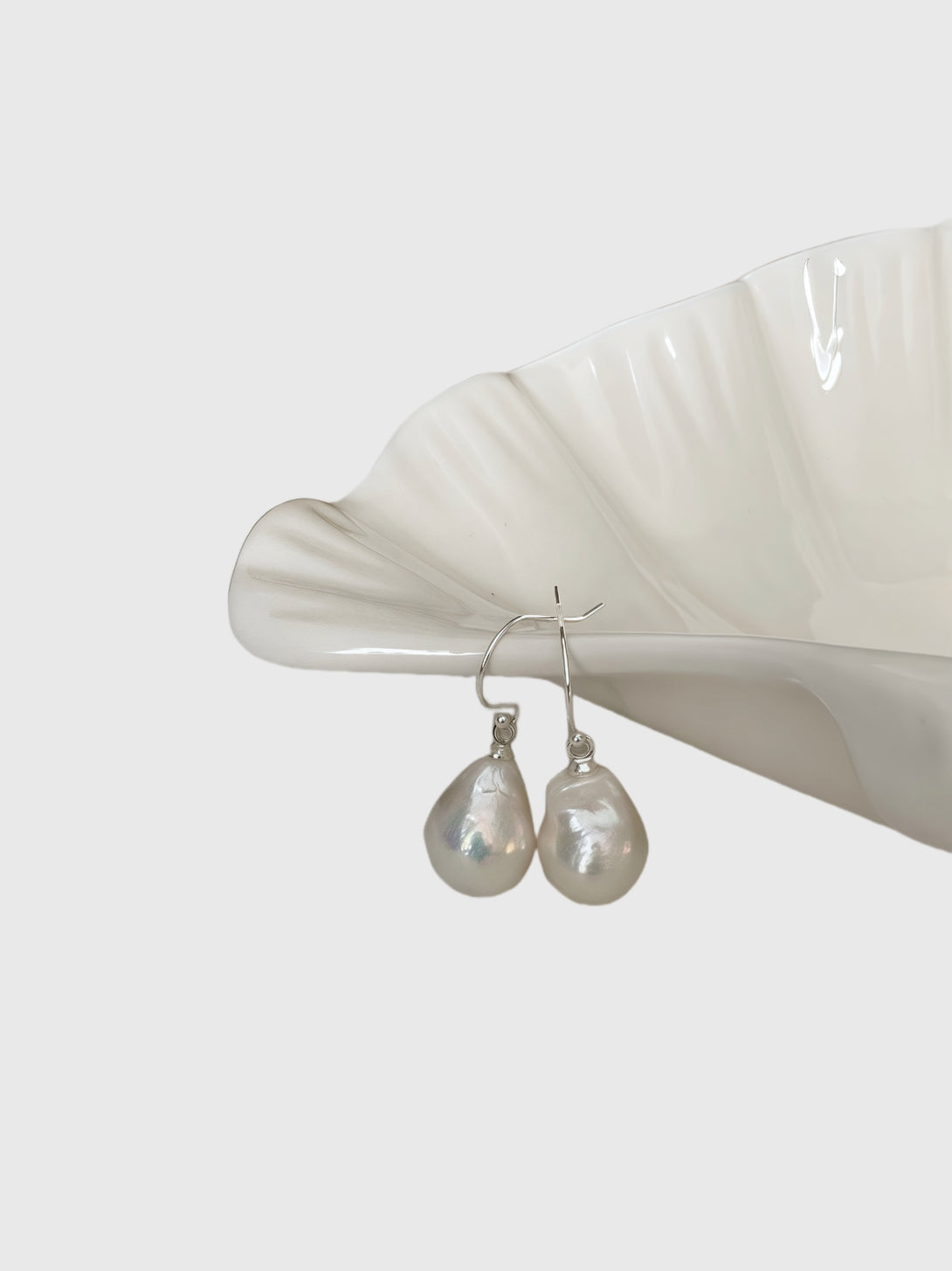 A quiet enchantment lives within Moonwater, a pair of baroque pearl earrings suspended like dewdrops on silk threads of moonlight. Their irregular, luminous curves reflect the softness of tides under a starlit sky, while minimalist silver hooks let the natural poetry of the pearls speak in full clarity. Graceful yet grounded, they move with a slow elegance, as if carrying whispers of the sea in each subtle sway. A tribute to wild serenity and timeless femininity, Moonwater is made for those who shine softly, yet unmistakably.
