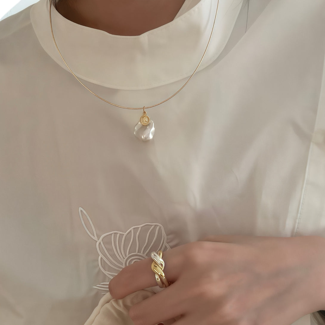 Some stories aren’t told, they’re felt, carried in silence like secrets of the deep. Oracle’s Treasure is a relic of intuition and grace, where the raw beauty of a baroque pearl meets the quiet authority of a golden emblem. Irregular, luminous, and one of a kind, the pearl speaks to the wisdom found in imperfection. Paired with a coin-like charm etched in quiet symbolism, this piece evokes the aura of ancient prophecies and modern elegance, made for those who listen to the voice within.