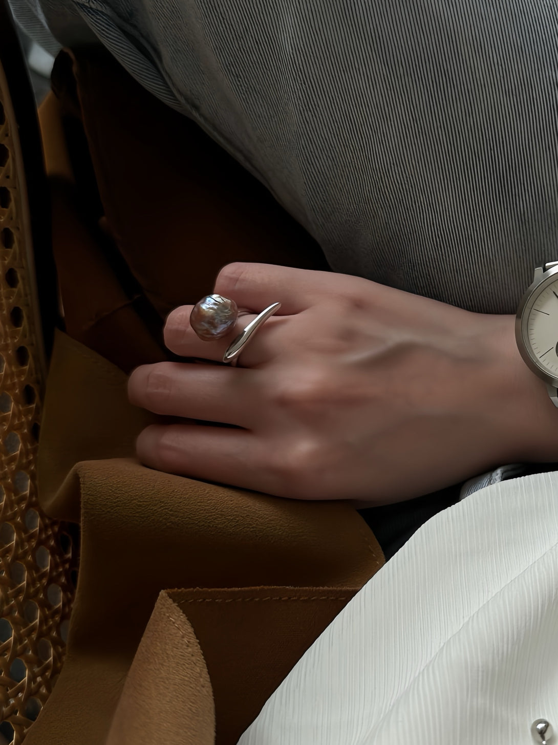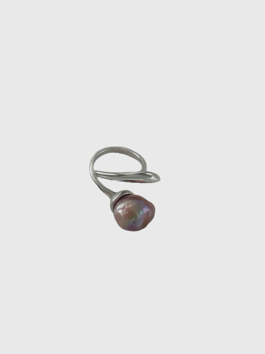 A poetic collision of form and freedom, this sculptural ring entwines a luminous baroque pearl with a silver loop that arcs like windblown branches. The pearl, in rich tones of mauve and dusk, evokes the petals of a wild orchid adrift in twilight. Each curve and contour of the setting feels organic, as if grown rather than forged, capturing a moment of movement suspended in stillness. "Orchid Tangle" is not just a ring, it is a wearable reverie, a whisper of untamed beauty wrapped around your finger.