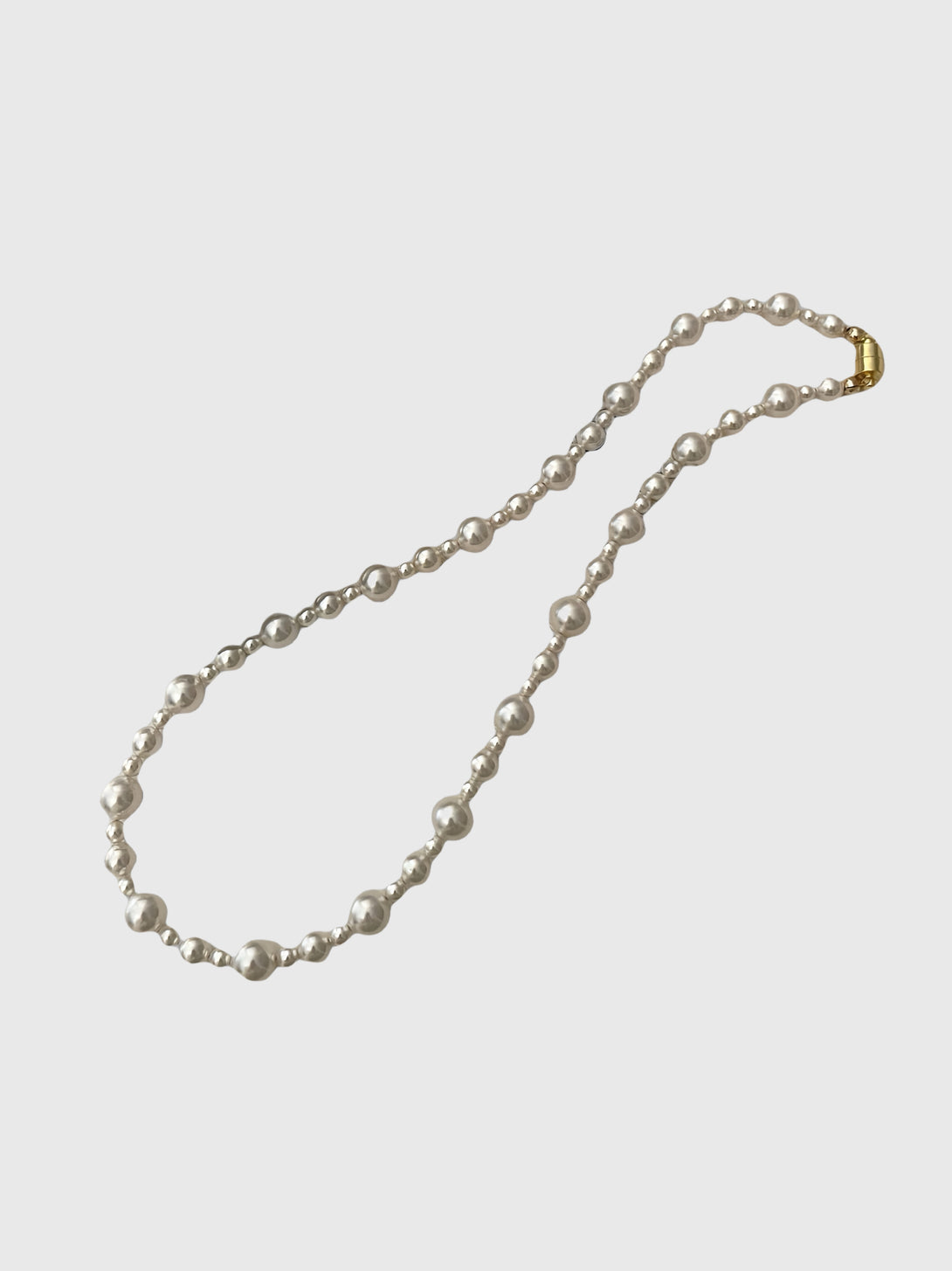 Roselle Strand is a dance of light and texture, each pearl a note in a soft, lyrical composition. With its elegantly staggered sizes and gently undulating silhouette, this necklace whispers of vintage charm and quiet opulence.