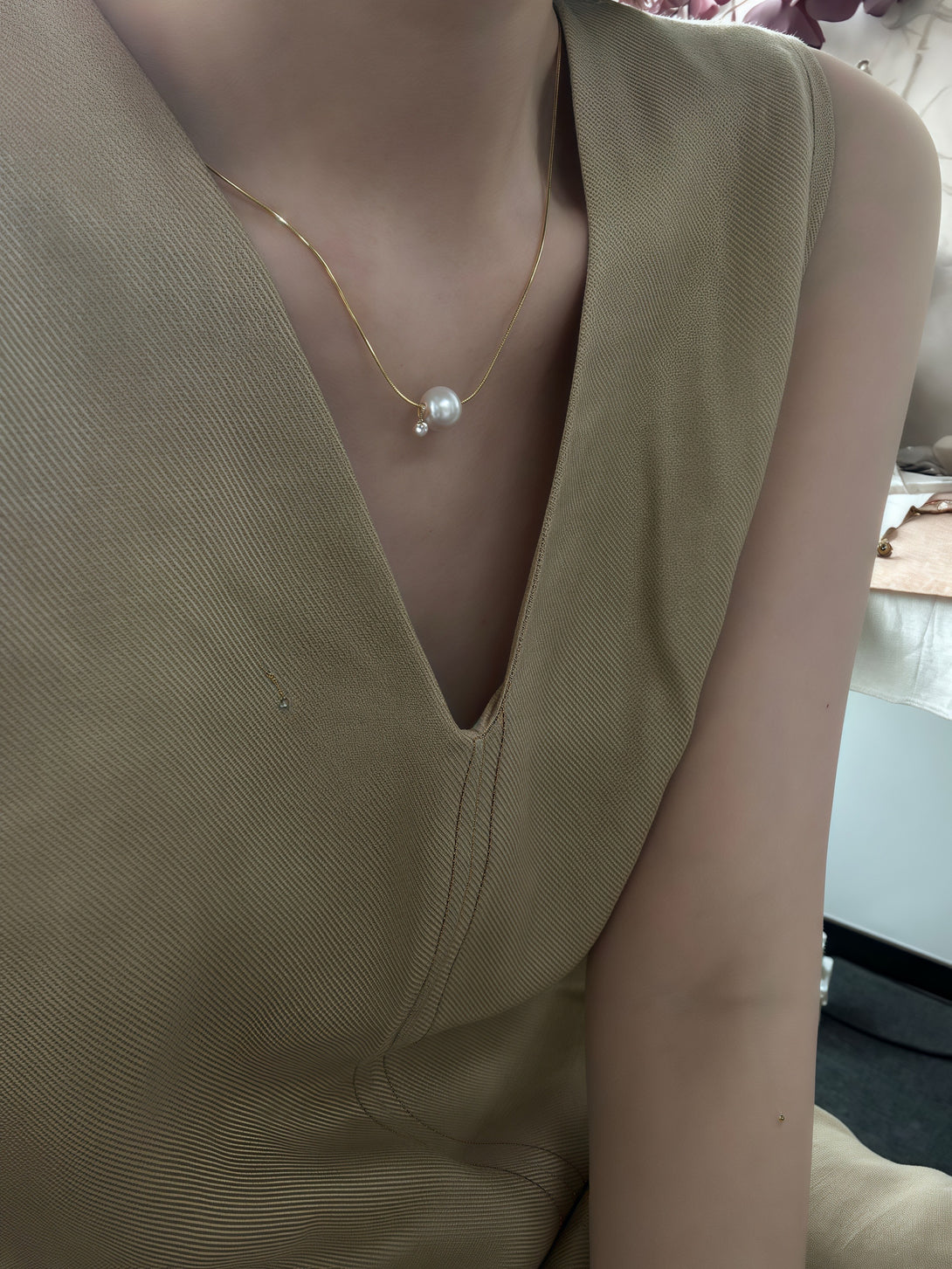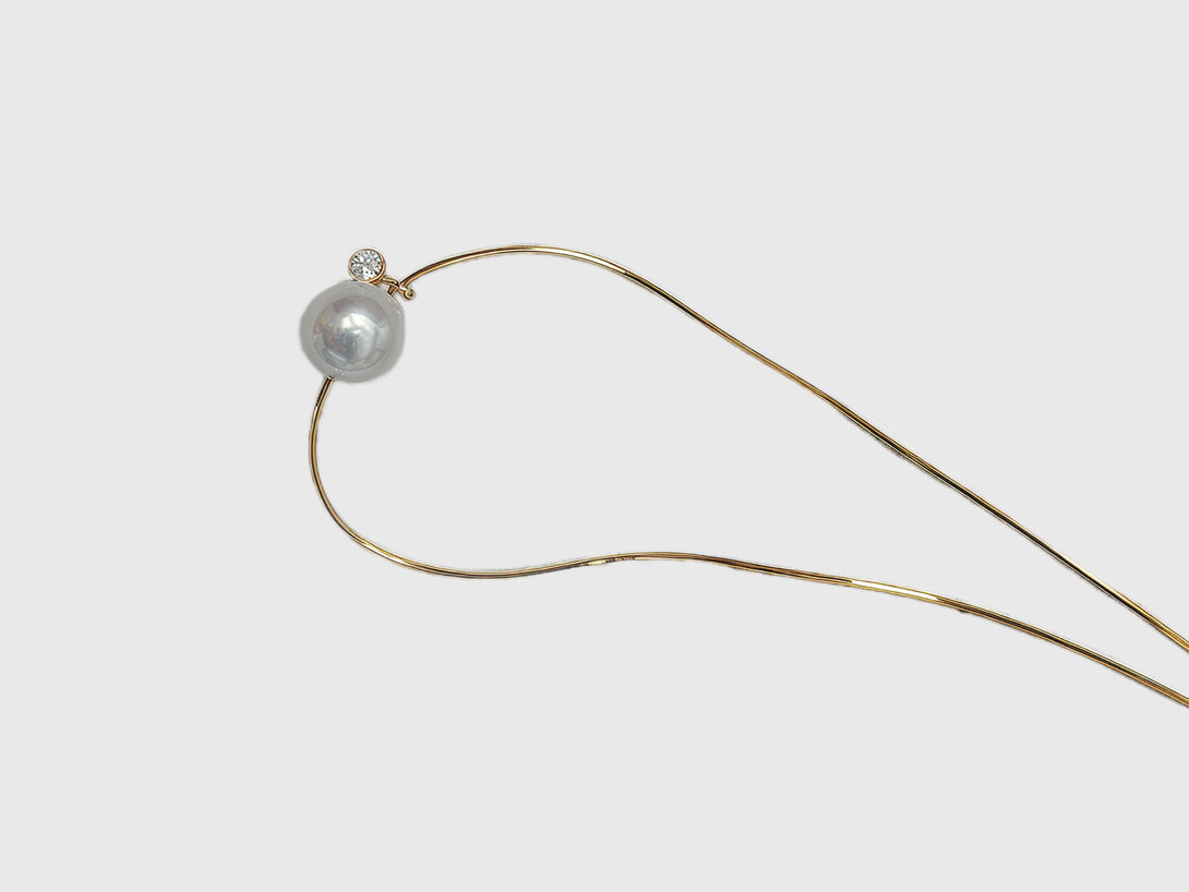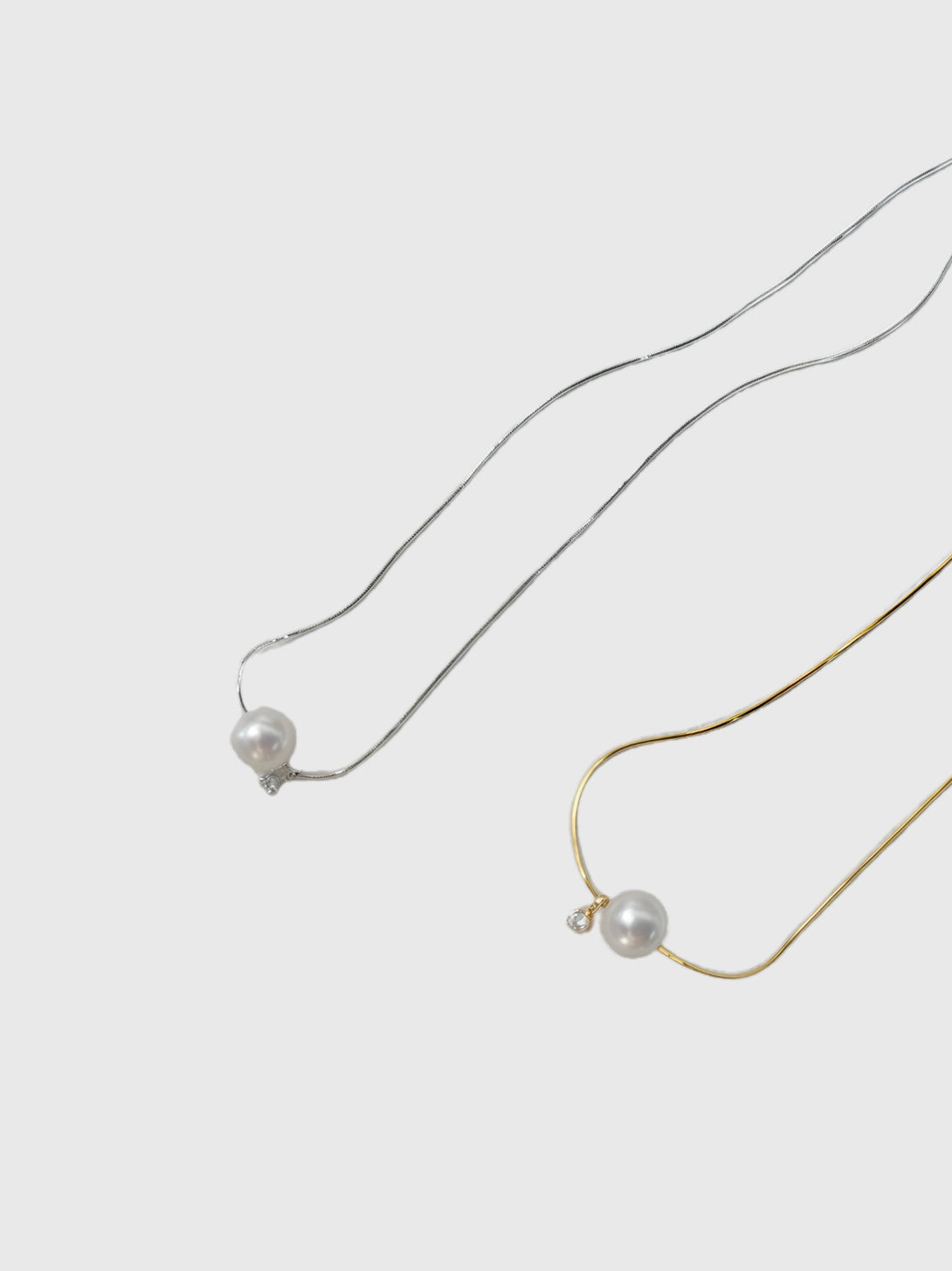 Silent Grace distills beauty to its most essential form, a single luminous pearl, paired with a delicate golden arc that cradles it like a quiet thought. The smaller crystal companion adds a whisper of light, barely there, yet undeniably radiant. Balanced and minimal, this necklace is designed to rest gently at the collarbone, drawing the eye not with grandeur, but with grace.