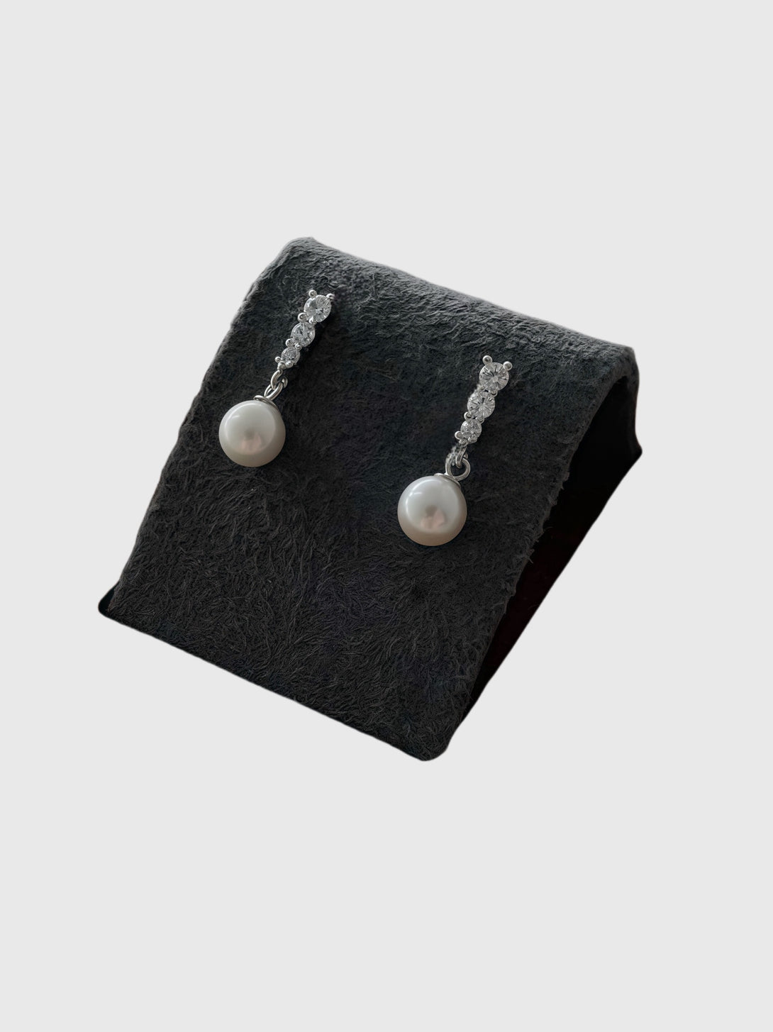 Solenn is a study in quiet radiance. A single lustrous pearl hangs beneath a column of fine, prismatic stones, their clarity untouched by excess. The silver setting offers a cool gleam, anchoring the composition in refined restraint. This piece speaks softly but clearly, for those drawn to purity in form and elegance in silence. A whisper of light for the minimalist romantic.