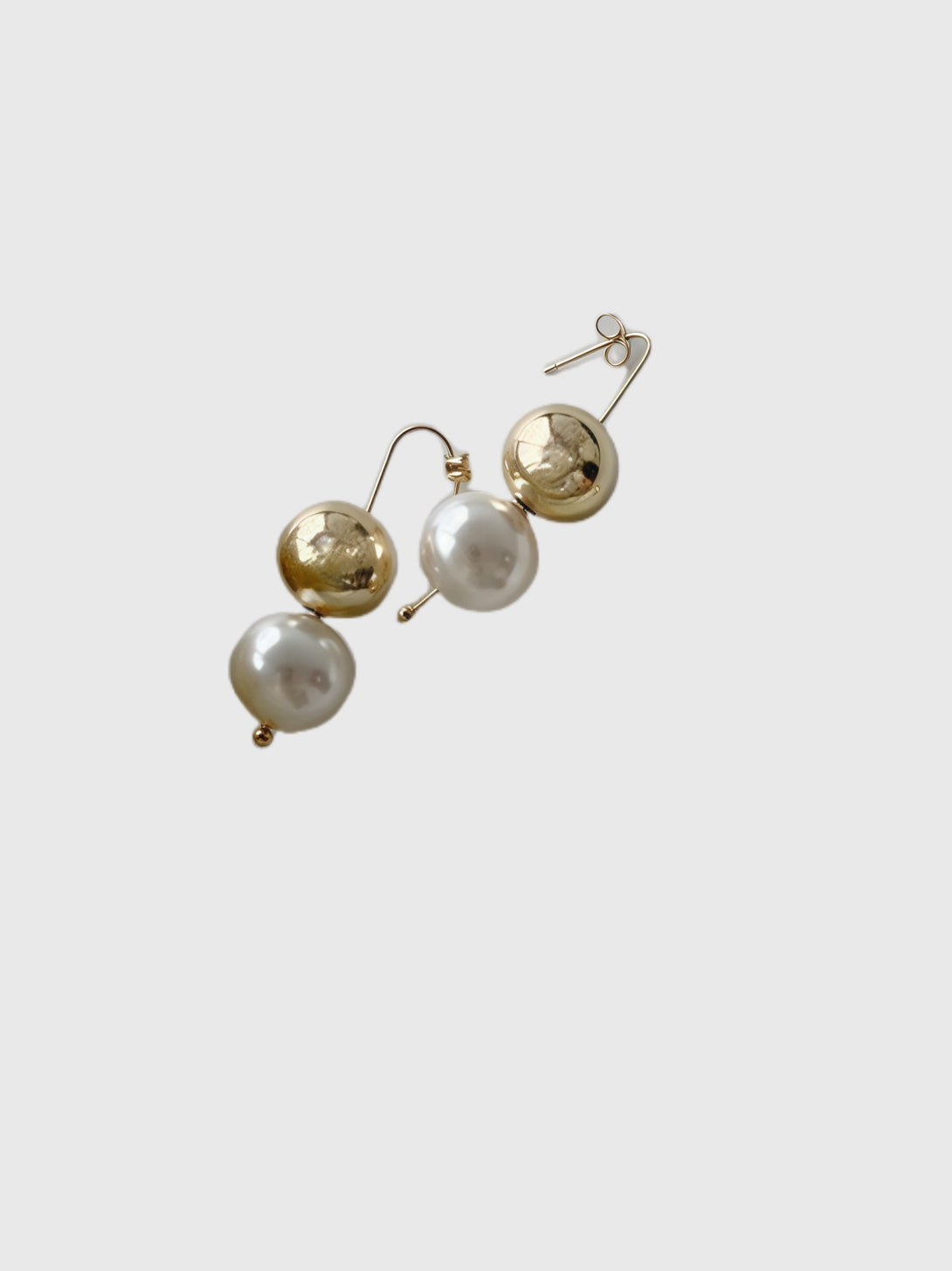 Golden and soft, Thresca carries the warmth of quiet opulence. With a delicate pairing of lustrous pearls and polished golden spheres, this piece speaks in tones of old-world grace and unspoken glamour. The composition is balanced, refined, and rich in subtle contrast, making it as fitting for twilight soirees as for sunlit mornings. Thresca does not speak loudly, yet it is always heard.